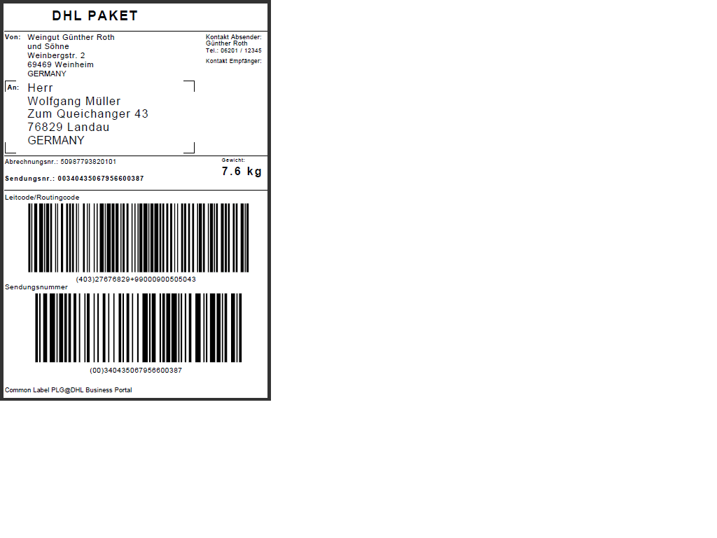 Sie direkt mit Wein2000 DHL-Paketmarken